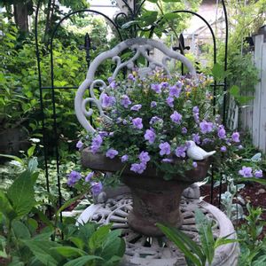 鉢の脚と上の鉢が 二つに割れてしまいました😰 綺麗にわれたので 脚の方を 逆さまにして お花入れてみました😃 チビビオラと 八重の バコバです メチャ可愛くて 鉢も何かいい感じ🤗💕