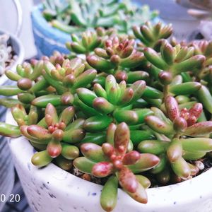 おはようございます(ꕤ ॑꒳ ॑*)ノ 冷暖房要らずの貴重な気候になりました🍠🍁 今朝の多肉ちゃん•*¨*•.¸¸♬︎ 仕立て直した虹の玉チャンが少しずつ色付いてきました🍁 今朝のお花はアスタービクトリアさん💜🩷 切り花にしても可愛いです🥰