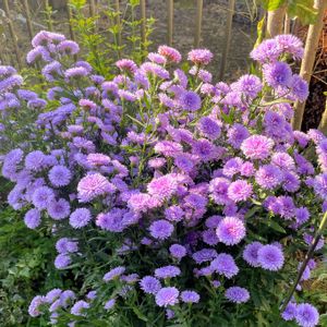 アスター🌈(八重咲き宿根ビクトリア) こんなに背丈が伸びるんだぁ〜 午後から研修会の為、コメント📝、閉じさせて頂きます🙏