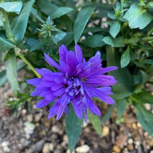 2年目の宿根アスター ビクトリア💜💙 綺麗な色で一輪咲きました 花期が長いのは嬉しい〜ෆ̈ 地植えにしたら思いのほか 背が高くなり これも支柱が必要かしらね