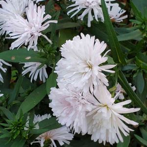 おはようございます☀ 昨日より今朝まで、雨☔でしたが、晴れて来ました☺️ アスターこの時期この紫色に惹かれます💜 白いコスモスとのコラボもいい感じ(^^♪ 右下は、我が家で今年咲いた小さくて可愛い、2年目のビクトリアさん 中々上手くいかないですが、もともと強い品種💪が生き残るのでしょうか?