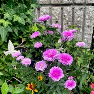 宿根アスタービクトリア✨毎年たくさん咲いて、我が家の秋の風景を彩ってくれています💖 切り戻しをしないと背が高くなり秋雨で倒れてしまうので、毎年行っているのですが、今年は気づいたときには花芽ができており、夏の切り戻しができませんでした😂(初夏に一度だけやりました)今年は暑すぎてウッカリです💦 案の定乱れて咲いていますが、安定の華やかさでとっても可愛らしいです🥰