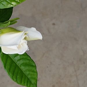 んっ( -_・)? 蓮の花👀‼️ ミニの八重くちなし🎵 一番上に咲いた花 💠 真横から写してみました🎵 この角度からも可愛い💠 ちょっと、蓮の花っぽい開き方でしょ❔💕