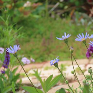 裏庭で𖤣𖥧𖥣。𖥧𖧧 木立ニーレンベルギア❁⃘*.゚ そよそよと•*¨*•.¸¸♬︎ 種まきヤグルマギクも ちょうどよいところで青が咲いた♪̊̈♪̆̈ 庭花壇のオステオさん💙 クールなシルバーブルーって感じ? 今日の青花 📸 🏷️美しく青きドヨウ 🏷️愛しの紫 参加させてくださいね.°ஐ.*
