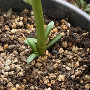 記録として 曼珠沙華、花が終わったので茎だけですが、根元から何かが出てきました。こらからどんな姿になるのかな? 初めて育てるので興味津々‼️