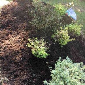 夏の名残りの花を片付けて 肥料を入れた花壇に