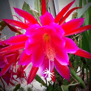 お隣のクジヤクサボテンが 一気に咲きました! 我が家のは白いクジヤクサボテンですが まだ咲いていません! 白も咲いたらアップしますね!この赤が強烈な輝きですね🎶🌸💖
