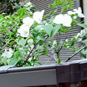 今は葉だけになりましたが 少し前に撮った ご近所の真っ白な山吹の花🎶💗 優しい姿でした!✌️😚