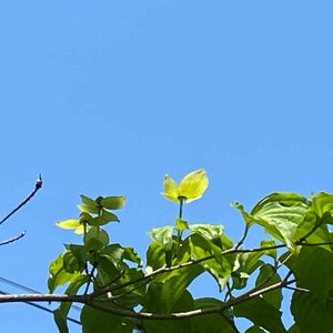 庭仕事していて ふと上を見ました。 真っ青な空にヤマボウシ 新鮮でした💙