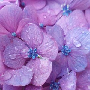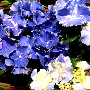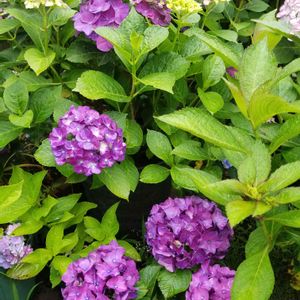 今朝のアジサイ 同じ紫アジサイですが、一番手前の鉢植えと奥ではガクの形が微妙に違います😁 名無しさんたち😅