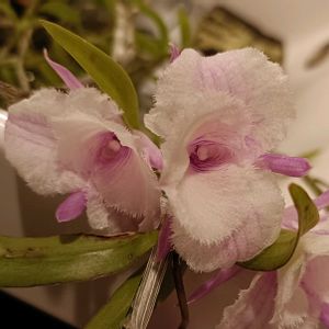 金曜日の蕾たちに参加させて下さい😊 1枚目:リンコレリオカトレア メモリアヘレンブラウン ‘スウィートアフトン’ Rlc.(Blc.)Mem.Helen Brown ‘Sweet Afton’ AM/AOS(82) 2輪咲いてくれそうꉂ🤭 2枚目:バンダコスティリス フュークス オーシャンスプレーVandachostylis Fuchs Ocean Sprayわーいわーい初花❣️ニヤニヤ😏💕バンダかと思ったらバンダコスティリスらしい。 3枚目:ファレノプシス マヒンヒン サマーキッス Phalaenopsis Mahinhin “Summer kiss” 外に出したら色が濃くなり、スポットもはっきりしたような… 4枚目:わんこと散歩する遊歩道の金木犀。2番花が咲きそうでいい香りが漂っています。 5枚目:肥後すみれ 季節を間違えちゃったみたいネ~