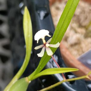 Ornithophora (Orpha.) radicans ちっちゃなランが咲きました。オーニソフォラ・ラディカンスと読むらしい。 オンシジウム近縁。お花は香りがあるらしいけど今のところ分からない。晴れないと、かな。