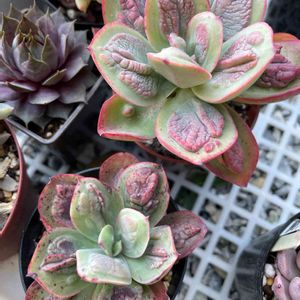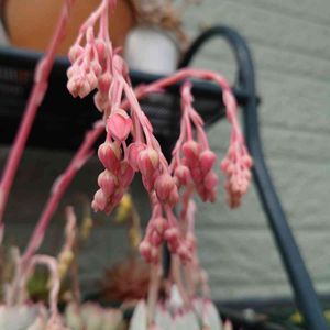 エケベリアのお花はベル型🔔 ピンク系の桃太郎🍑 ん〜まだ咲かないな。 ちょっと真面目なお話。 よく名無し多肉ちゃんの名前を聞かれるけど 名無しは名無しなんだと思うんだ。 名前を付けられるのは、生産者さん。 しっかりした特性を持ったものだけにちゃんとした名前をつけてるのが、ブランド苗。 それ以外は雑種、MIXちゃん。 だから値段が違うよね。 名前は生産者さんが勝手につけていいらしいから 同じ親同士でも違う名前だったり 同じ名前でも親のどちらかの特性が強く出てたりするよね。 名無しちゃんもじゅうぶんかわいいけど そこにポイッとブランド名をつけて ネットで拡散すると 何がなんだかわからなくなっちゃうよね💧 今のエケベリアはわたしにはさっぱりわからない😅