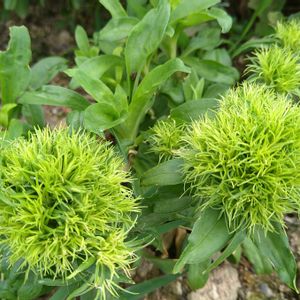 ナデシコ てまり姫💚 美女ナデシコの枝変わり種の珍しいダイアンサス。マリモのような緑色のボール状のお花です🟢🟢 去年冬越ししたのが、やっと咲きました🤩