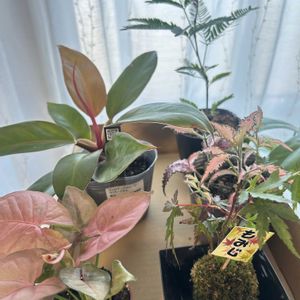 こんな時期にお迎えすべきじゃないと十分わかっているのだけど、 植物欲に抗えなかっった😅💦 シンゴニウムネオンとフィットニアは我が家のピンク植物コレクションに仲間入り🎀 もみじはお値下げ品150円🍁 エバーフレッシュはずーっと欲しくて、でもタイミングが合わず… ちょうど良いコンパクトなサイズのものをお迎え👍🏻✨ そしてフィロデンドロン。シルバーメタルって札が付いていたけど違うでしょ!プリンスオブオレンジと思うのだけど…🤔 詳しい方あってますか?