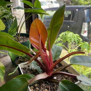 おはようございます☀️ なんとか体調は戻ったような戻ってないような…?とりあえず熱と咳は止まったので、様子見ながら仕事行ってみることにします🥺 フィロデンドロンのサンレッドくん、控えめな新葉が出ました❤️ プリンス王子の赤い葉はだいぶ退色して薄いオレンジになってきているので、今のところサンレッドくんのほうが赤く見えますね❤️🔥 どっちも元気に育ってね…🥰