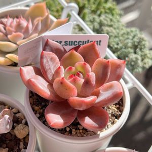 おはようございます☀ 見てるだけで癒される元気な子達(^^) ①いろいろ 新しい試みの多肉さん達もいい味出してます💞 ②カリアリ いきなりの直射日光(失敗)にも動じず、艷やかに元気いっぱい🥰 ③サクラモンロー やっぱり🌸の季節なので注目👀 うん🩷可愛い(>ω<) ④ブルーサプライズ お迎えしたままのビニールポットで安定してなくて、落下させてしまって(・・;)、急遽植え替えしました🪴ε-(´∀`*)♬