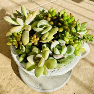 去年の夏、徒長しまくりの美人さんを、チョンパして寄せ植えしました❣️今はこんな風になっています😁 美人さんいろいろです🥰