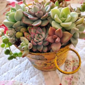 今日は一日中冷たい雨☔️☔️☔️ 庭仕事も出来なかったので、少し前に作った多肉ちゃん達の寄せ植えをup 冬の間に徒長した多肉ちゃんたちがたくさん😅 チョンチョンと✂️してぽいぽいと植えてみました😆 この間お迎えした稚児錦ちゃんもココに収まりました🥰