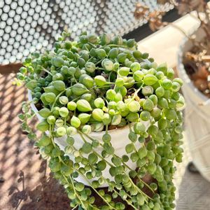 斑入りグリーンネックレスは陽当たり悪くて斑が少なくなったー😅 なんかつぶつぶと後ろの網の影のせいでブツブツな画像、、