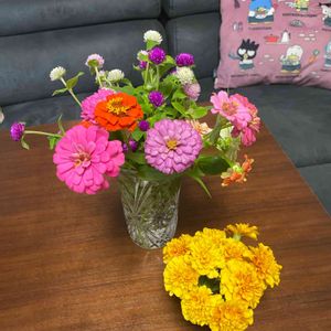 このところの雨で倒れていた百日草とミントです🌼🪴 お部屋に飾り癒されてます💓🥰
