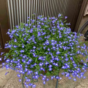今日のお花 ロベリア アズーロコンパクト💙 昨年pic ふわっふわっの60㌢くらいに🪴 愛らしく育ってくれましたが ☔️梅雨どき雨に濡らしてしまい💦 玄関で西日に👼🏻 今日もうHCで並んでた‥‥ 少し胸の奥きゅんと😌