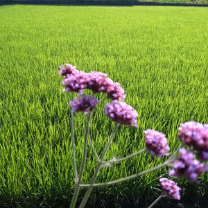 近所の畑で見かけたお花です。 軸が長く伸びて先端に小さな花をたくさん付けていました。 2923/7/20撮影