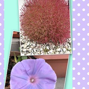 おはようございます( ˶˙ᵕ˙˶ ) 🍂 コキア 先月末postしました同じコキア 色付いてきました。 💜⋆͛ 朝顔 昨年 孫が学校で植え 持ち帰った朝顔とは 違うので 何処からか飛んできたのかもしれません ՞⸝⸝ᵒ̴̶̷ 𓈞 ᵒ̴̶̷⸝⸝՞ 最後の1輪です。 昨日、夕方 用事があり娘の🏠に行った際📷✨ そして 昨夜 コラージュしている途中 一瞬居眠り😴 気がついたら こんな感じに なっていました 🤗