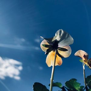 青空の力を借りて どう撮ってもビオラの青みがイマイチだったんです。 日差しと青空か、うんうん