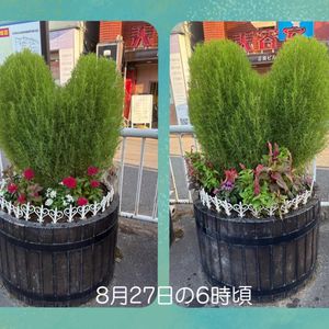 こんばんは🙂↕️ 寝る前に… 昨日今日(水・木) 練馬区みどりの活動〜園芸ボランティア、駅前の花壇に水上げとお手入れしに•*¨*•.¸¸♬︎ 中央のコキアがいつの間にか大きくなり、♡💚♡になりまして、可愛いですよね😍