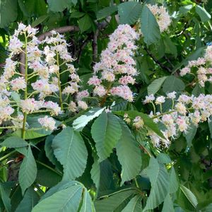 栃の花が高いところで咲いていました。 開きすぎると、二枚目や三枚目のようになるようです。🫢🫢🫢