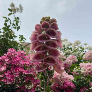 ローズガーデンの薔薇🌹達に囲まれて咲いていました。 大勢で一生懸命に口を開けて😲歌っているようなお花😊