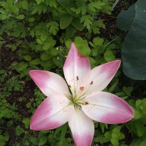 かわいいユリが今年も咲いてくれました🩷 雨が止んだら草取りしないとです💦