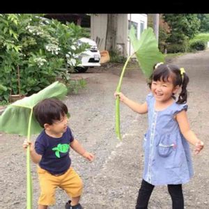 🎶かえるのあまがさ かっさかさ〜♪ と大きな里芋の葉を貰って幼稚園で習ったお歌を大きな声で歌いながらはしゃぐお孫ちゃん❤︎ 大き過ぎる〜😳