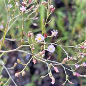 ヒロハホウキギク キク科シオン属 河原では赤く紅葉した茎に まだ小さな花が咲いていました 草刈り後に咲いてきた瑞々しいお花もありました 北アメリカ原産 花期: 8〜10月