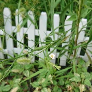 水のない用水路に咲いていました。白くてちっちゃい花が咲いていました。 《ヒロハホウキギク》 キク科シオン属 花期 8〜10月 ひろさんが教えてくださいました。