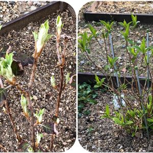 紫陽花2種類 芽吹いてきて嬉しいです。