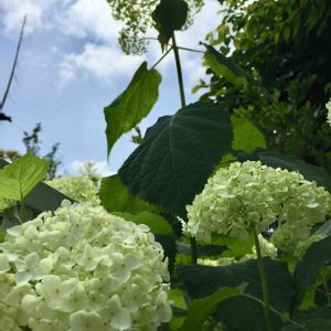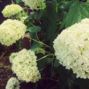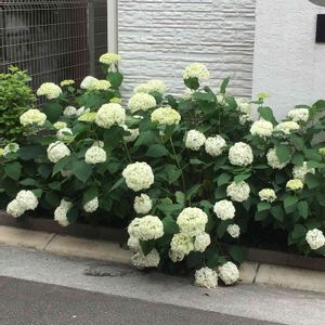 アジサイ アナベル 日陰にあるので、房は小さめ。 それでも20房…嬉しい😂 我が家の庭では丁度いい大きさかな。 今年は高めで仕立てたら、見えにくくなっちゃった。😋
