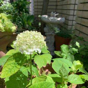 鉢植えなので、 あまり大きくならないでと、 剪定ばかりしているアナベル アナベルとは思えない⁈両性花の多い花が結構咲いてしまいました。 まぁ、これも可愛いなぁと自己満足しています。