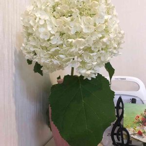 アナベルを花瓶に生けてみました‼️ 緑っぽい白い花びらがモリモリです🤍 水揚げが難しいけど、切ったらすぐバケツの水に浸し、 長めに水切りして、深水に生けます