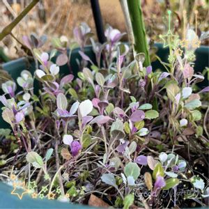 7月12日種まきの円(まどか)春の宴が5ヶ月になりました💕 右下のは買った葉牡丹。比べて見るとまどかはなかなか色が入らないしキャベツみたい😵もっと葉っぱ取ろうとかな💦 エントランス花壇のストックの隣に入れてみました。次のpic