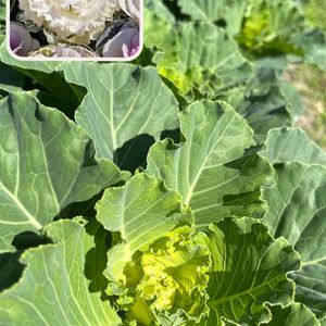 畑のキャベツが… って、 キャベツではなく、切花用の葉牡丹です。 ほんとにそっくりです。 今、草丈40cmくらい。 この倍の高さになる予定ですが… ↖️のような美人さんになりますように🙏