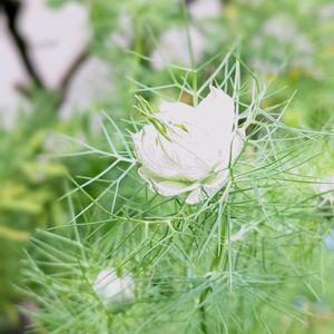おはようございます☀ やっと晴れました( ◜‿◝ )♡ 我が家のニゲラ こぼれ種です 白が咲き始めました☺️💓