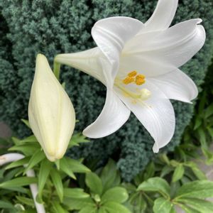 GS今日のお花 ♡ユリ♡ テッポウユリ…凛とした気品が…💖 横向きに咲く スカシユリと、同じ白🤍でも、雰囲気違う 今、ユリ満開😊