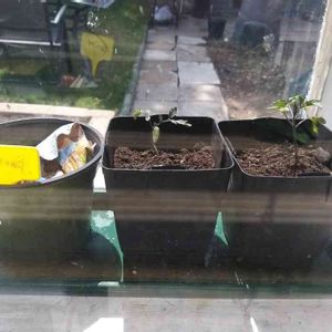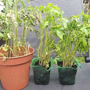 畑でトマトの苗を買った🍅 Tigerella, Shirley, Cherry basket Falls の3つ。3つ目はハンギングバスケットに最適らしい🙂 ウチのこぼれ種で出て来た芽は、それらに比べかなりおチビちゃんなので、キッチンの二重窓の間に移動した。 ガンバって大きくなってね〜🤗