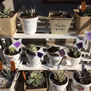 おはようございます😊 先日、カラスに襲われた多肉ちゃん😢 見た目が悪くなるけど、カラス避けに使わないCD-ROMをぶら下げていました💧でも、やっぱり見た目が気になる、、、 で、昨日セリアでいいもの見っけ!ガーランドにCD-ROMをハサミで切りくっつけて出来上がり💕 少しは見た目が良くなったかな〜