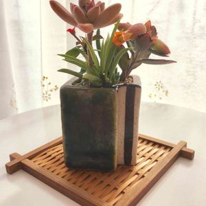 こんにちは〜〜(*´∀`)♪💕 リメ缶が作れるようになるまで ちょこっと寄せ植えの練習中 20円の苗ですが お花も咲いてくれてますよ🎵 お義母さんに頂いた 織部の花器です😌💞