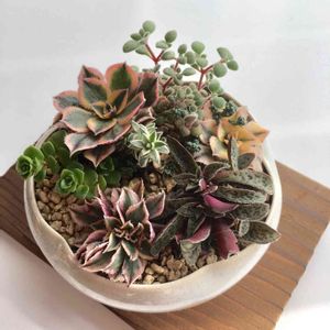 最近お迎えした3種類を、自作リメ缶に 寄せ植えしてみました〜〜(#^.^#)♐️ 白いぷっくりさんが福だるま 黒い子が、くろすけ 手前の子が、桜吹雪