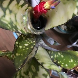 昨年うちに来てから子株を二本出したビルベルギア。暖かくなってひと月ほど20%遮光に当てたところ、赤くなってきました。謎のハイブリットですが、トリコームの向こう側に覗くスポットと色が期待を持たせてくれます。左の子株2つの方が締まっている気がします。締まった株にしたいものの、水を減らすと葉先が枯れたりとさじ加減が難しい…