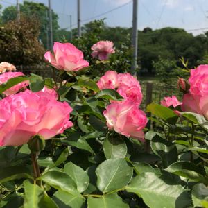 青い空にピンクの薔薇って とっても映えますね🥰❤️ はな阿蘇美のバラです🌹🥰